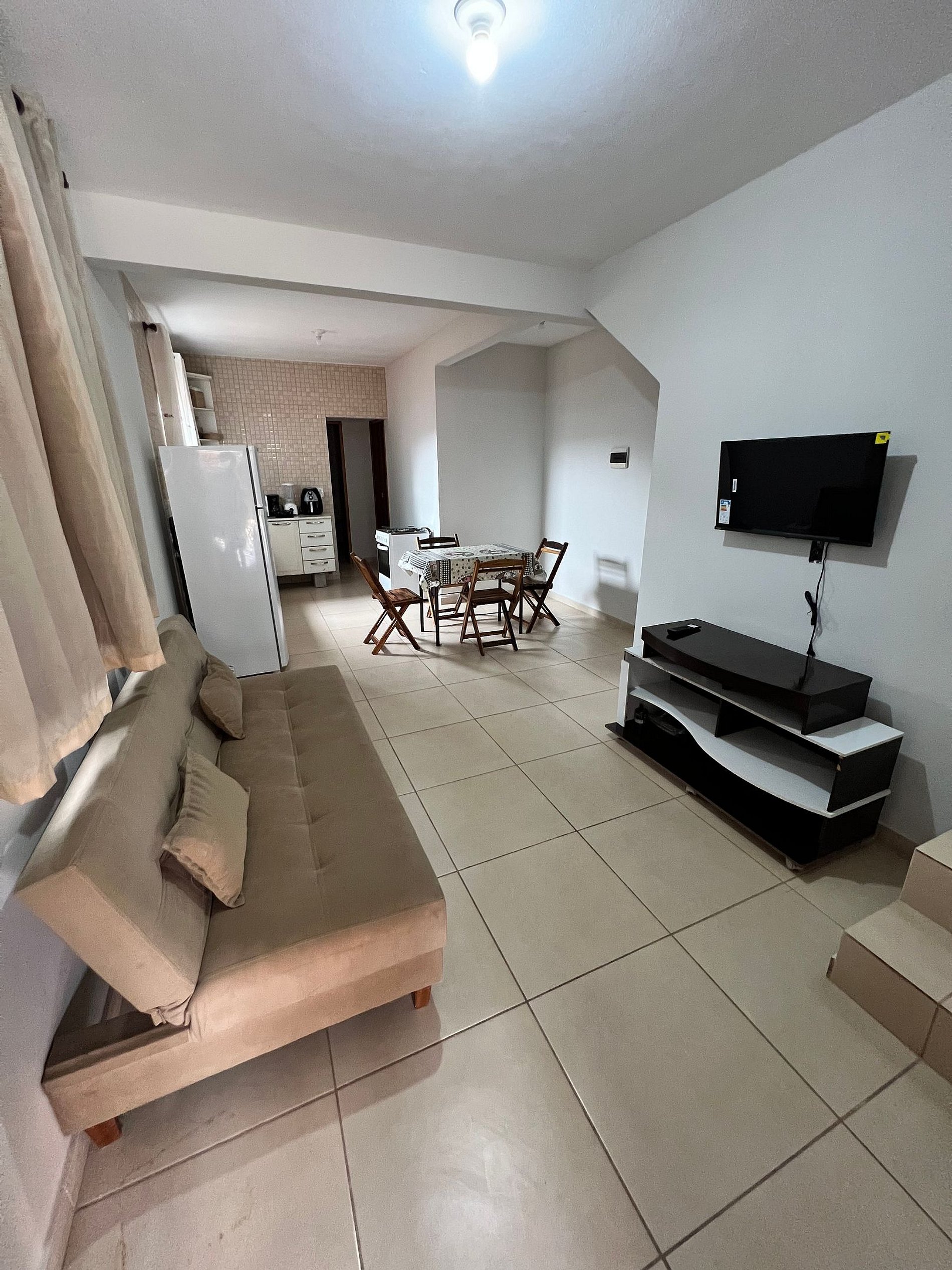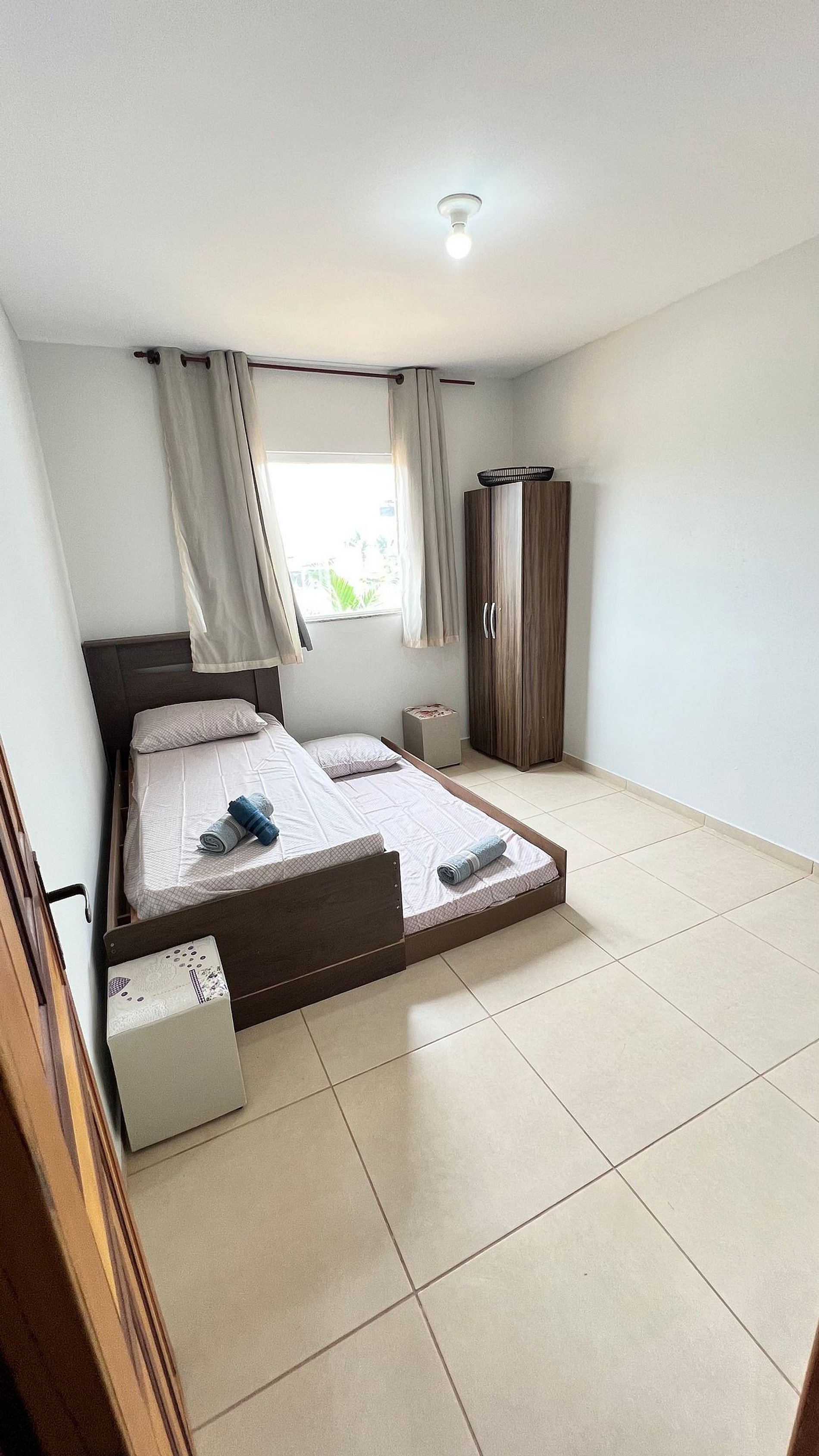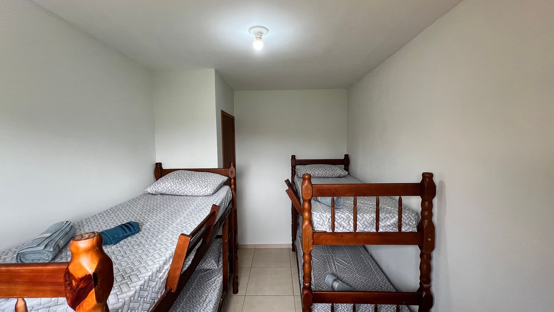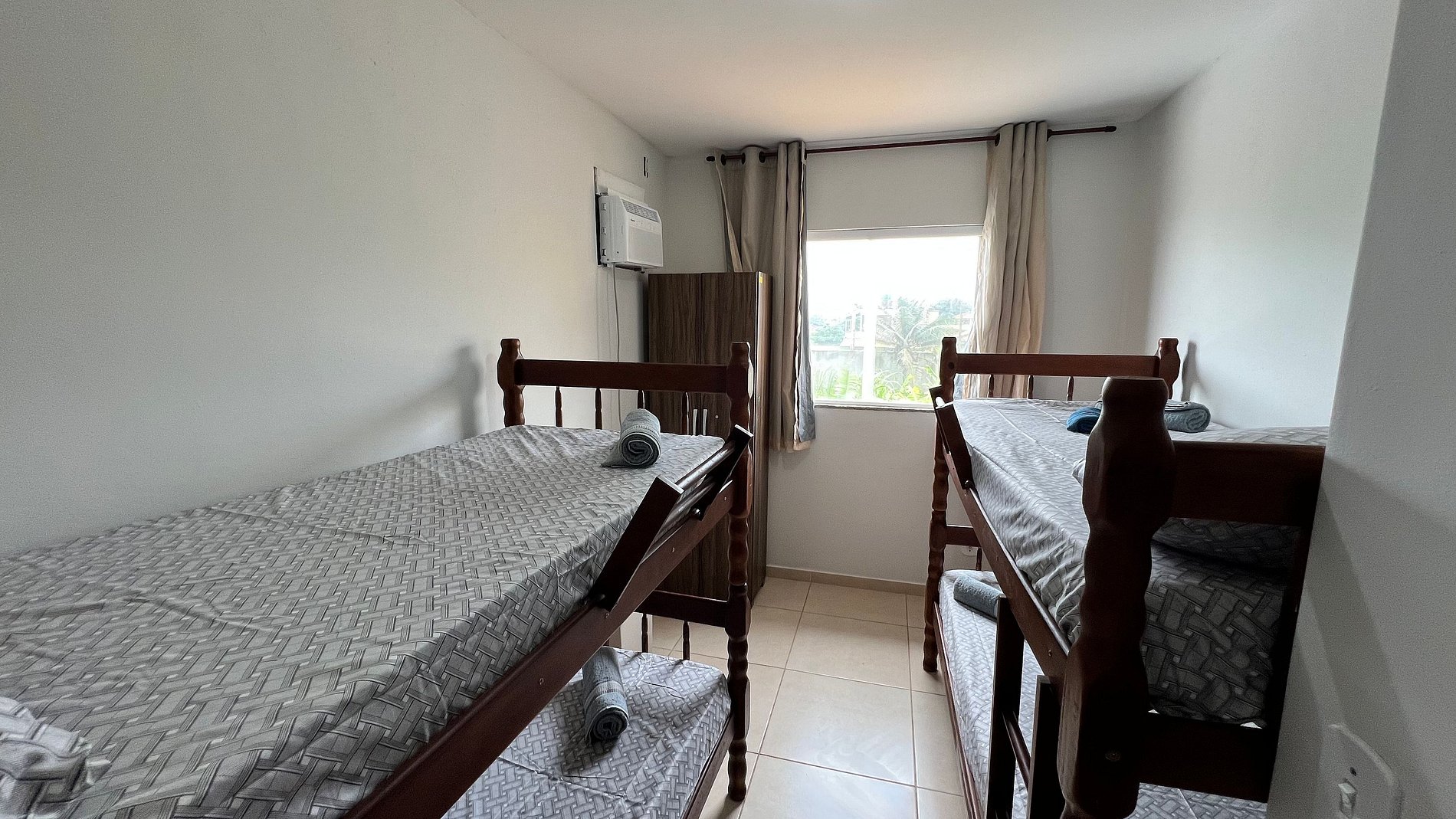 3 quartos (2 com ar-condicionado): um com 2 beliches, outro com bicama e um com cama Queen. Sala com sofá-cama e 2 banheiros.