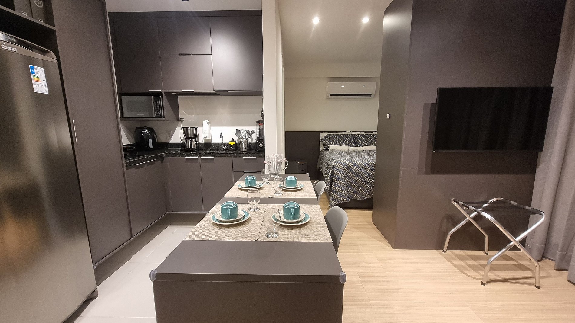 Apartamento limpo e totalmente equipado . Super recomendo e voltaria novamente .
