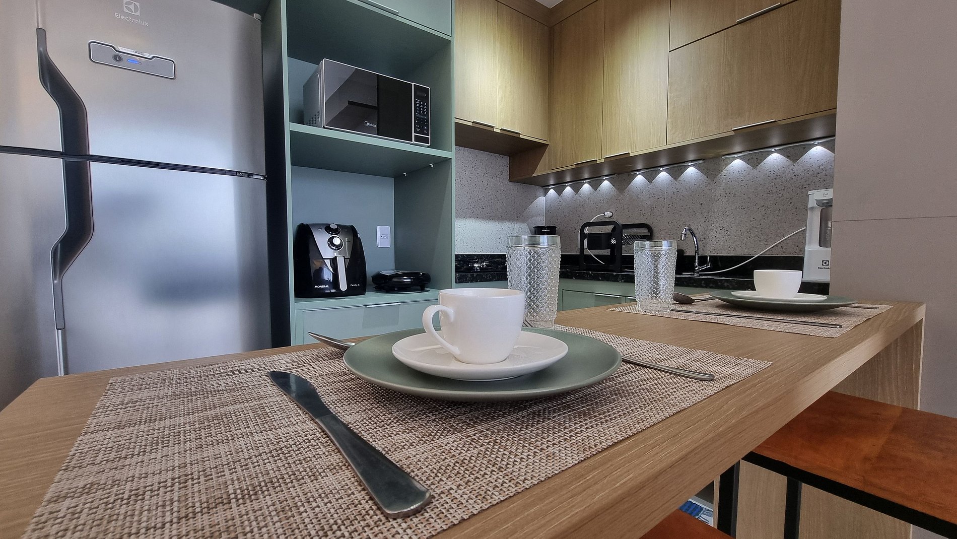 - Coworking, lavanderia e mini mercado 24h para sua comodidade;